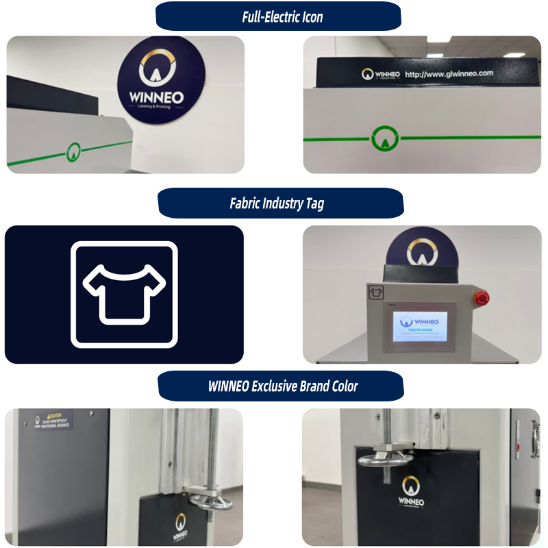 Simple visual codes sort the machines for you: a bold "Full-Electric" icon and a woven-fabric tag let anyone identify the right model in a second. The carefully tuned WINNEO Blue grabs and holds the eye, quietly broadcasting professional-grade quality without a word.