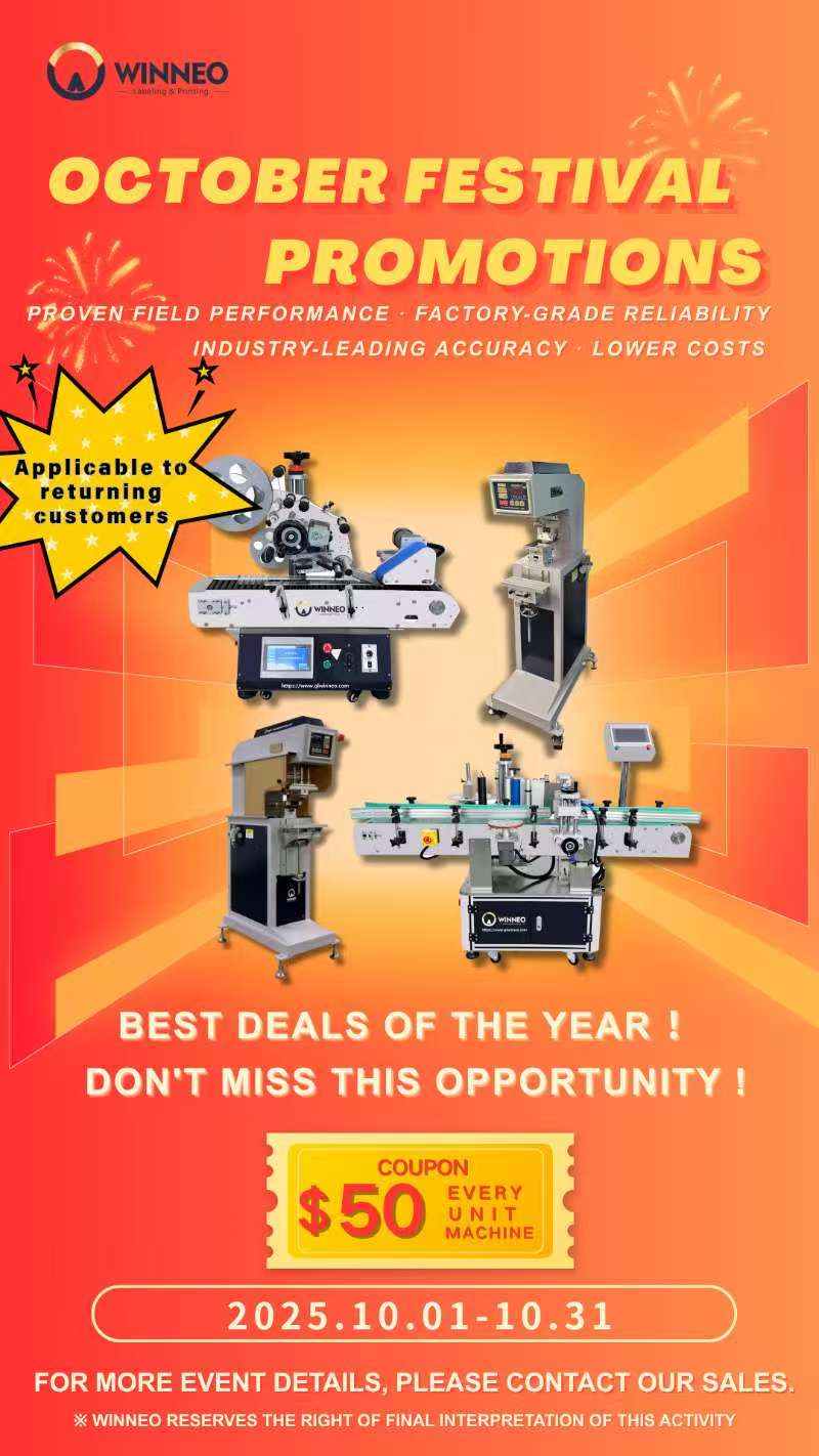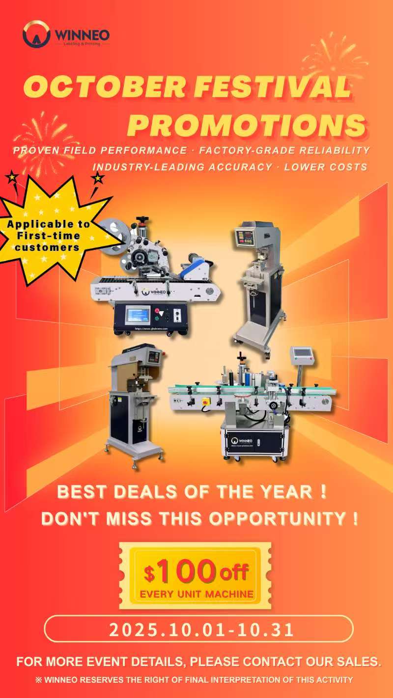1-31 de octubre de 2025 – Winneo anuncia su Promoción de octubre Para compradores internacionales de tampografía y etiquetado de alta precisión. Esta promoción está diseñada para impulsar la producción a gran escala y reducir los costos totales de adquisición.