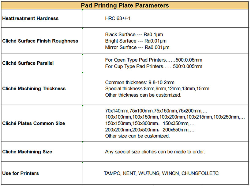 Nuestras placas están fabricadas con acero de aleación de alta calidad y una dureza estable, lo que garantiza que los bordes de los patrones no se desgasten ni deformen durante la impresión a largo plazo. Son especialmente adecuadas para tampografía de alta frecuencia y alta precisión.