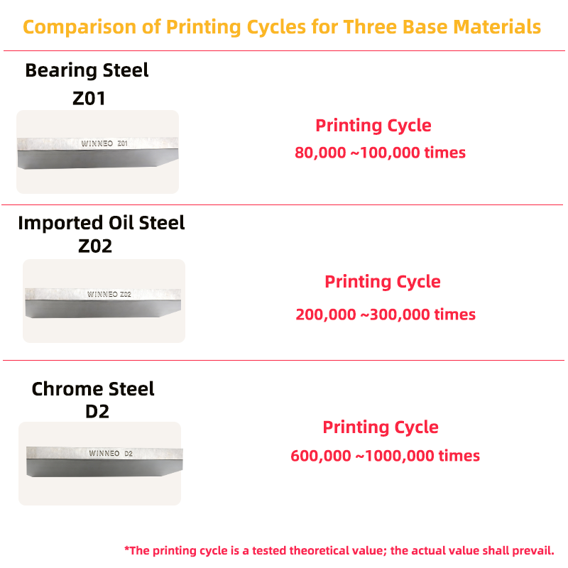 CONSEJOS DE WINNEO: Las placas de cliché de acero común (como el material de acero GCr15 o 2510#) se pueden rectificar y reutilizar 2 o 3 veces, y las placas de cliché de acero cromado (como el D2) se pueden reutilizar 5 veces o más.